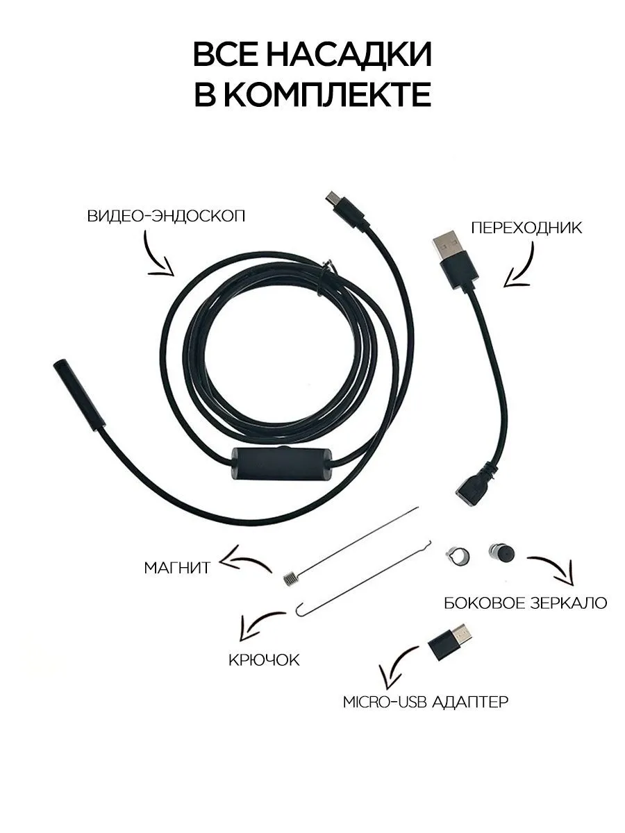 Відео-ендоскоп для смартфона та комп'ютера Надаємо Вам ендоскоп — гнучка камера з підсвіткою, яка стане незамінним обладнанням для автосервісу та діагностики у важкодоступних місцях.